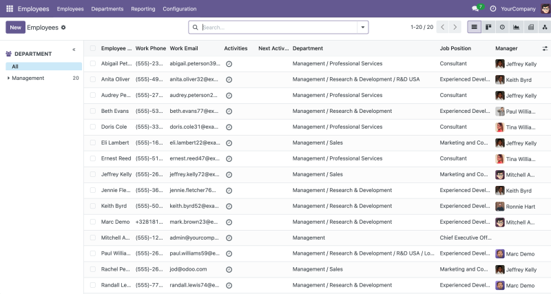 Standardmäßig zeigt Odoo die Mitarbeiterübersicht der HR-App im Kanban-Layout – mit Kacheln, Bildern und wenigen Details. Für viele Anwendungsfälle ist jedoch eine Listenansicht übersichtlicher und effizienter, z. B. wenn man mit vielen Datensätzen arbeitet oder zusätzliche Felder auf einen Blick sehen möchte.
